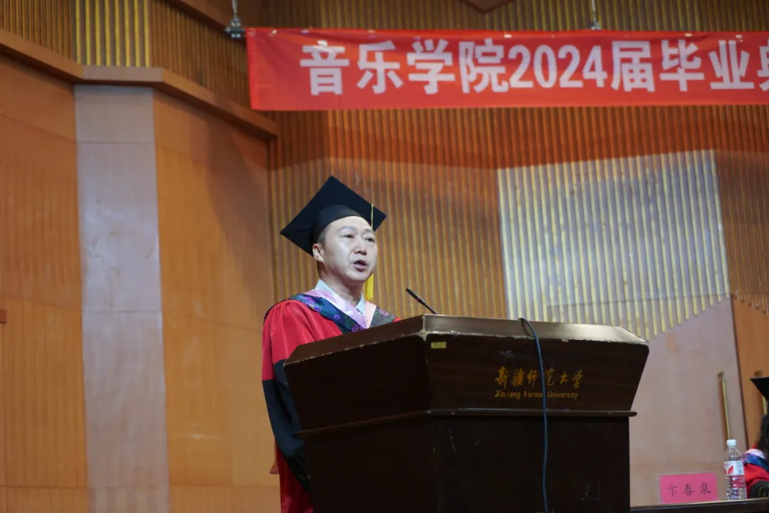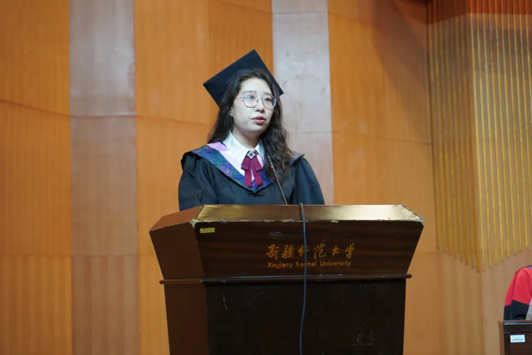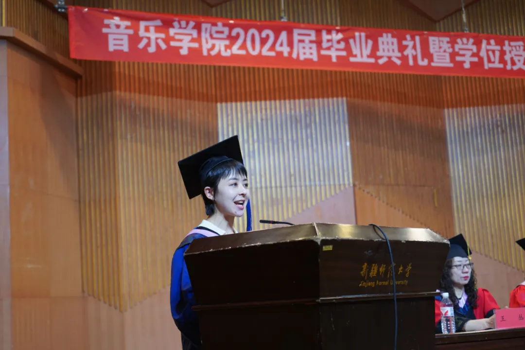 我院硕士毕业生代表音乐与舞蹈学专业夏迪娅·阿布都克里木,本科优秀毕业生代表音乐学20-2班冶彤发言。他们总结个人成长,展望未来旅途,祝福同窗翱翔。