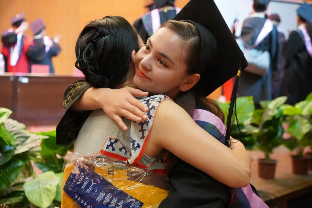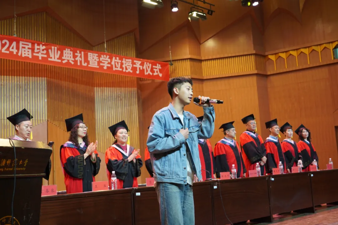伴随着学弟学妹们精心创编的《背上行囊出发吧》离别歌曲,老师们目送毕业生们离场。太阳成集团tyc7111cc2024届毕业典礼暨学位授予仪式圆满结束。