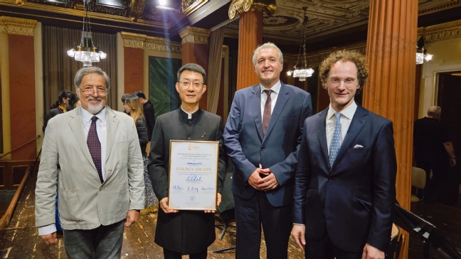8月4日晚,大赛在举世瞩目的维也纳金色大厅的勃拉姆斯厅举办了获奖音乐会,到场观众座无虚席。米尔茨市市长现场向获奖选手颁发了盖有市政府印章的证书。