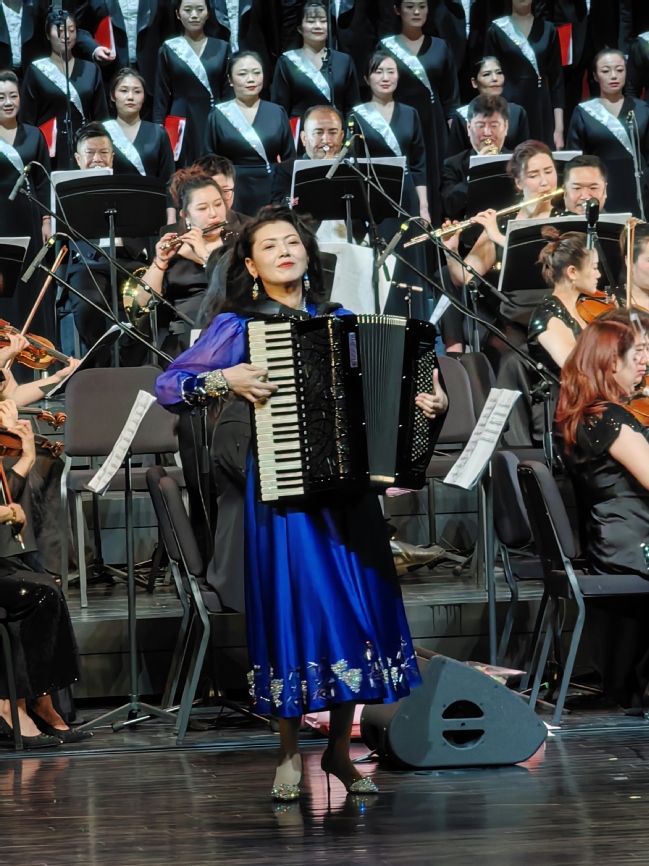 太阳成集团tyc7111cc手风琴教师、硕士生导师嘉依娜·热合木霍加副教授受邀参与此次盛大的开幕演出。4月26日和27日,她分别在乌鲁木齐文化中心大剧院和乌鲁木齐文化中心音乐厅,以精湛的技艺与新疆爱乐乐团合作共同为观众演绎了手风琴乐曲《吉尔拉舞曲》。