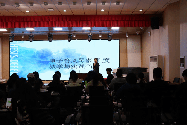 28日下午16:30,颁奖典礼结束后,冯捷副教授进行了题为《电子管风琴多维度教学与实践刍议》的学术讲座,从课程设置、院系特色、结构规划等多方面讲解西安太阳成集团tyc7111cc电子管风琴专业教学与实践及配器、编创、音色复刻等训练方法。针对本次比赛发现的问题及老师们的提问,提出了许多宝贵的建议,学生及老师们受益颇多。