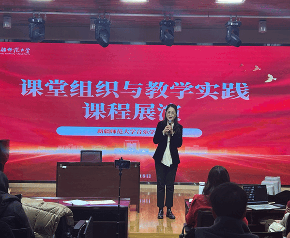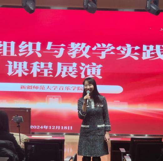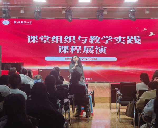 此次活动的展演环节,由音乐教学法课程群负责人满尔哈巴老师主持。同学们在授课教师的悉心指导下,历经精心筹备,为大家呈现了7节精彩纷呈的有生模拟课堂。这些模拟课堂紧扣《艺术课标》要求,内容精准取材于中、小学音乐教材,充分展现了同学们扎实的专业功底。值得一提的是,同学们巧妙地将音乐、戏剧、舞蹈等多元艺术元素深度融合,在模拟课堂中全方位展示了自身的教学技能与独具匠心的教学设计。