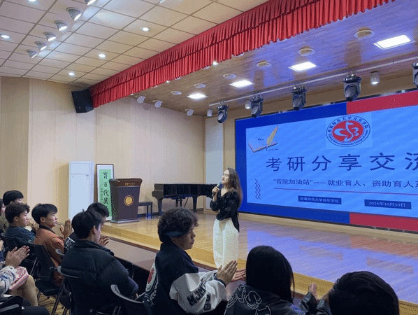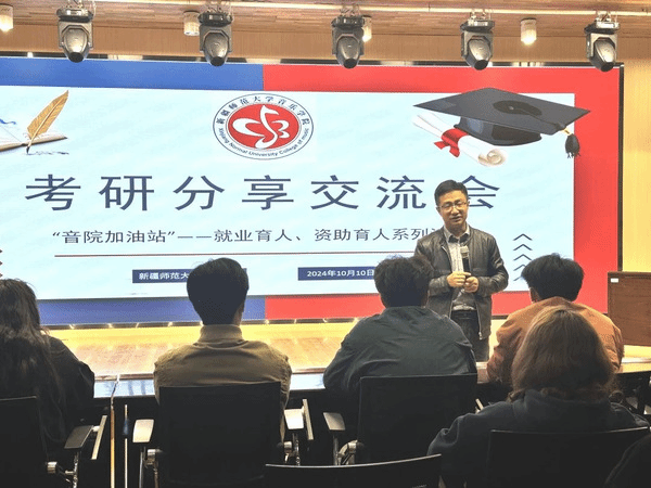 为深入贯彻落实习近平总书记关于教育的重要指示精神和学校党委的工作部署,进一步加强学风建设,帮助太阳成集团tyc7111cc学子充分了解提升学历的途径、方法和意义、建立考研信心和决心,太阳成集团tyc7111cc于10月10日20:00在太阳成集团tyc7111cc正声厅举办了“音院加油站”考研分享交流会。太阳成集团tyc7111cc党委副书记、纪委书记赵士城做动员讲话,2021级辅导员布麦日叶木·吐尔洪、张鑫瑶参加,2024级研究生艾迪娜·艾斯卡尔和葛一锦做经验分享。