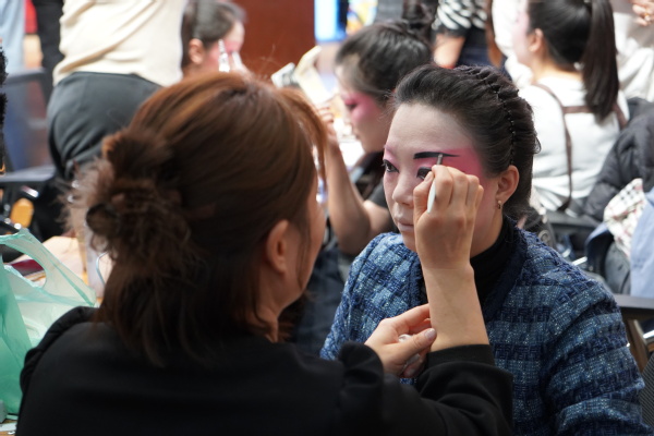 陈瑛老师在现场亲自演示了化妆工具与材料的正确使用方法,手把手指导学员进行实际化妆操作。在学员们操作过程中,她细致入微,耐心纠正每一处细节,力求让每一位学员都能熟练掌握京剧化妆的基本技能,为日后的教学实践筑牢根基。