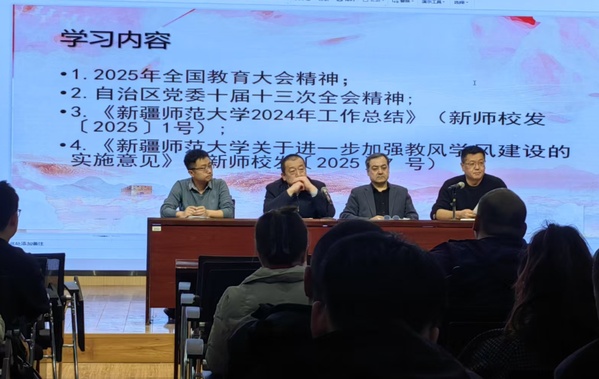 随后,自治区党委十届十三次全会精神的学习让教师们进一步了解自治区发展战略和工作重点。全会强调的稳定与发展并重、民族团结、教育科技人才协同推进等内容,激励教师们立足岗位,为新疆教育事业贡献力量。