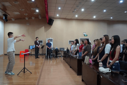 王宏伟首先现场观摩了我院合唱排练,对合唱团的整体面貌以及排练情况给予了充分肯定。他指出,民族歌剧《二泉》的合唱中,演员们必须打破仅聚焦旋律记忆与歌词背诵的练习定式,要以沉浸式的艺术感知,深度挖掘作品的精神内核。在排练过程中,需将合唱艺术与歌剧的整体架构紧密结合,从剧情推进、角色塑造、舞台呈现等多维度出发,让合唱成为推动戏剧发展、渲染情感氛围的重要力量,最终实现艺术表达的和谐统一。