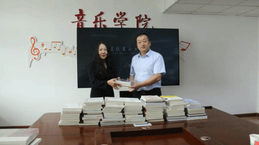 会上,杨志刚与斯日古楞进行了图书捐赠仪式。杨志刚代表我院感谢文化艺术出版社的支持与帮助,他表示期望文化艺术出版社能持续深化与新疆高校的合作,以文化为笔、以书籍为墨,携手同心,共同书写绚丽多彩的中国故事,为推进文化润疆工作,铸牢中华民族共同体意识贡献坚实力量。