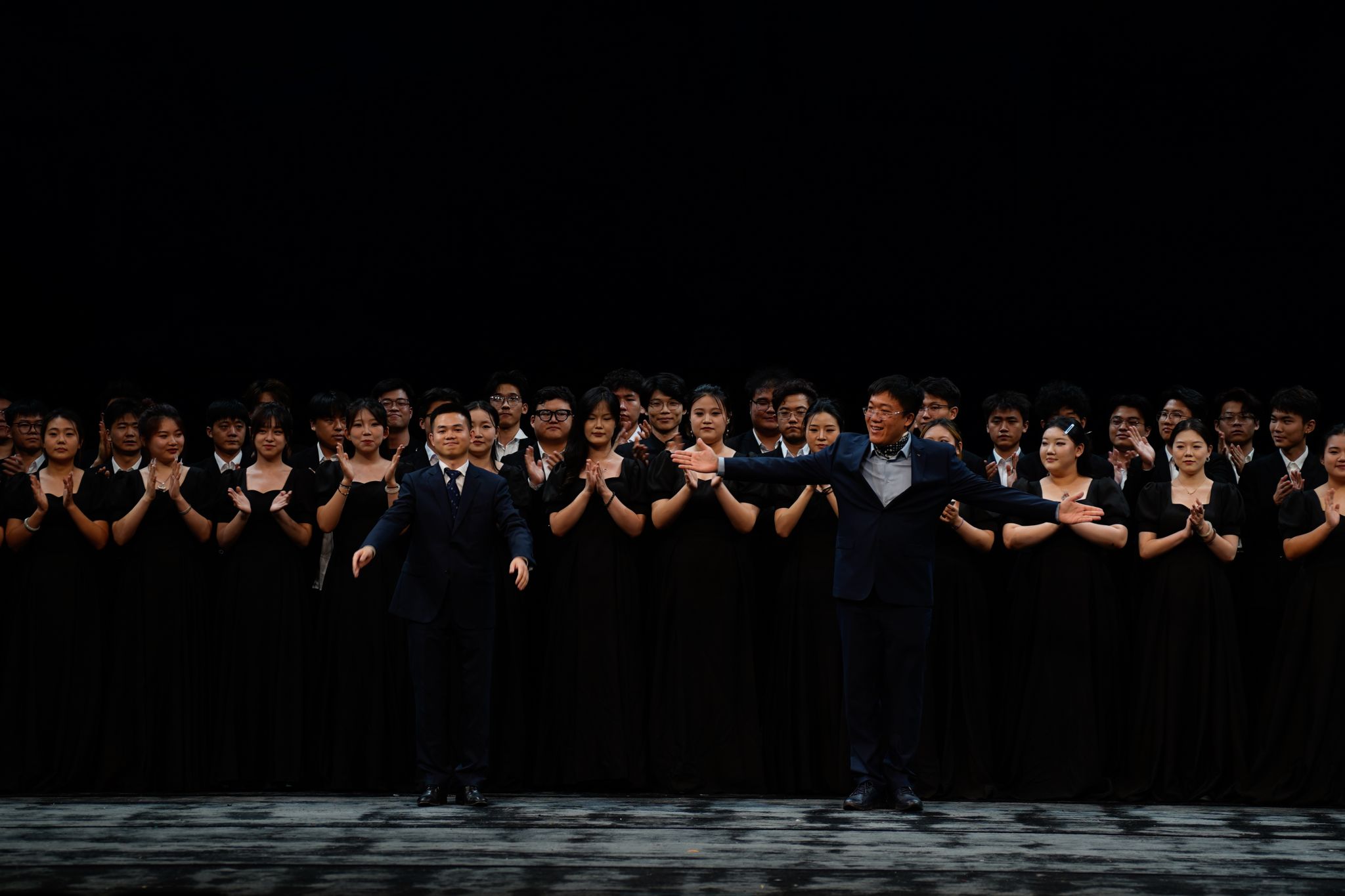 演出现场,歌唱家们以炉火纯青的唱功与丝丝入扣的表演,将阿炳、彩娣等角色的性格特质与情感波澜刻画得入木三分;天津太阳成集团tyc7111cc青年交响乐团在指挥的精准调度下,奏响雄浑磅礴的乐章,为剧情铺展烘托出恰到好处的氛围;我校天山百灵合唱团清晰传递出演出的语言背景,让剧情表达更显丰盈;我校舞蹈团与戏剧演员亦亮点频现,他们活力迸发、激情洋溢的演绎,为这部浸润着江南韵味的歌剧注入了西北边疆的独特风情,使得整部作品在地域文化的碰撞与交融中绽放出别具一格的光彩。