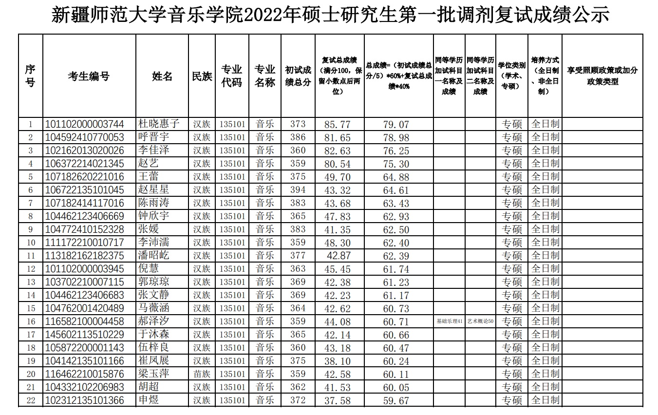 太阳成集团tyc7111cc2022年硕士研究生第一批调剂复试成绩公示