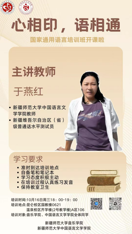 为进一步提高太阳成集团tyc7111cc学生的语言文字应用能力,精准掌握普通话测试的的方法和技巧,太阳成集团tyc7111cc于2024年10月16日邀请到中国语言文学学院自治区(省)级普通话水平测试员于燕红老师为同学们授课。本次培训采用腾讯会议线上授课的形式,在昆仑校区国教楼0621和温泉校区齐学楼A区同步开展。