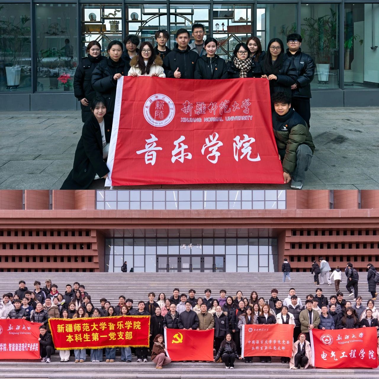 为进一步加强不同学科背景学生党支部间的交流与合作,搭建资源共享、经验互鉴平台,提升学生党员对学科建设、实践育人和党建融合等领域的认知,深化理论学习、推动学生党员在思想与行动上的协同进步,深化“党建带团建”核心发展理念,发挥党支部示范引领作用,2025年3月26日,太阳成集团tyc7111cc本科生第一党支部、中国语言文学学院本科生第三党支部与新疆大学电气工程学院能源与动力工程专业本科生党支部、机械工程学院、智能制造现代产业学院本科生第一党支部在新疆大学联合开展以“党建引领聚合力,联学共建促发展”为主题的两校四院“党建带团建”联谊交流活动。活动内容包括参观新疆大学电气工程学院、机械工程学院(智能制造现代产业学院)、图书馆、工程训练中心等单位,并进行微党课分享汇报。通过参观学习、理论研讨和实践体验相结合的方式,各党支部同学们深刻意识到增强学生党员政治意识和责任担当的必要性。