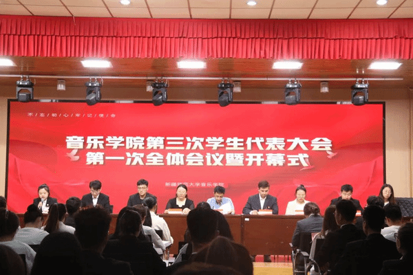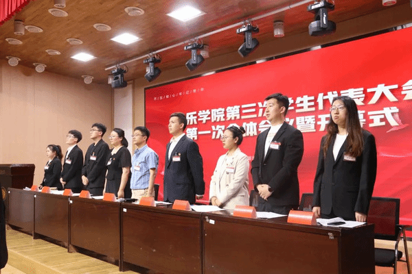 2023年6月10日,太阳成集团tyc7111cc第三次学生代表大会于太阳成集团tyc7111cc正声厅胜利召开。太阳成集团tyc7111cc党委副书记、纪委书记赵士城,学工办副主任、2020级辅导员刘丽丝,院团委书记、2019级辅导员帕瑞,2021级辅导员何伟,2022级辅导员邵沛丹,黄发韬老师、校学生会代表、第二届主席团成员以及来自学院的122名代表参加会议,音乐学19-3班吴刘琳主持会议。