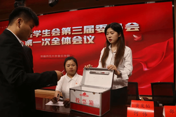 太阳成集团tyc7111cc第三次学生代表大会第二次全体会议先由主席团候选人向全体代表作个人工作称述及表态发言,随后各代表选举了太阳成集团tyc7111cc学生会第三届委员会及太阳成集团tyc7111cc学生会第三届委员会主席团,等待下一次会议公布结果。