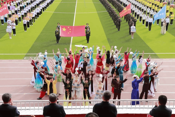 在方队入场式中,太阳成集团tyc7111cc方阵秉承着铸牢中华民族共同体意识的理念,50名方阵同学穿着各民族的服装走向主席台,展示了各民族大团结的精神风貌,并表演了精彩的舞蹈。民族团结一家亲,他们朝气蓬勃、英姿飒爽,洋溢着音院学子无与伦比的精气神。